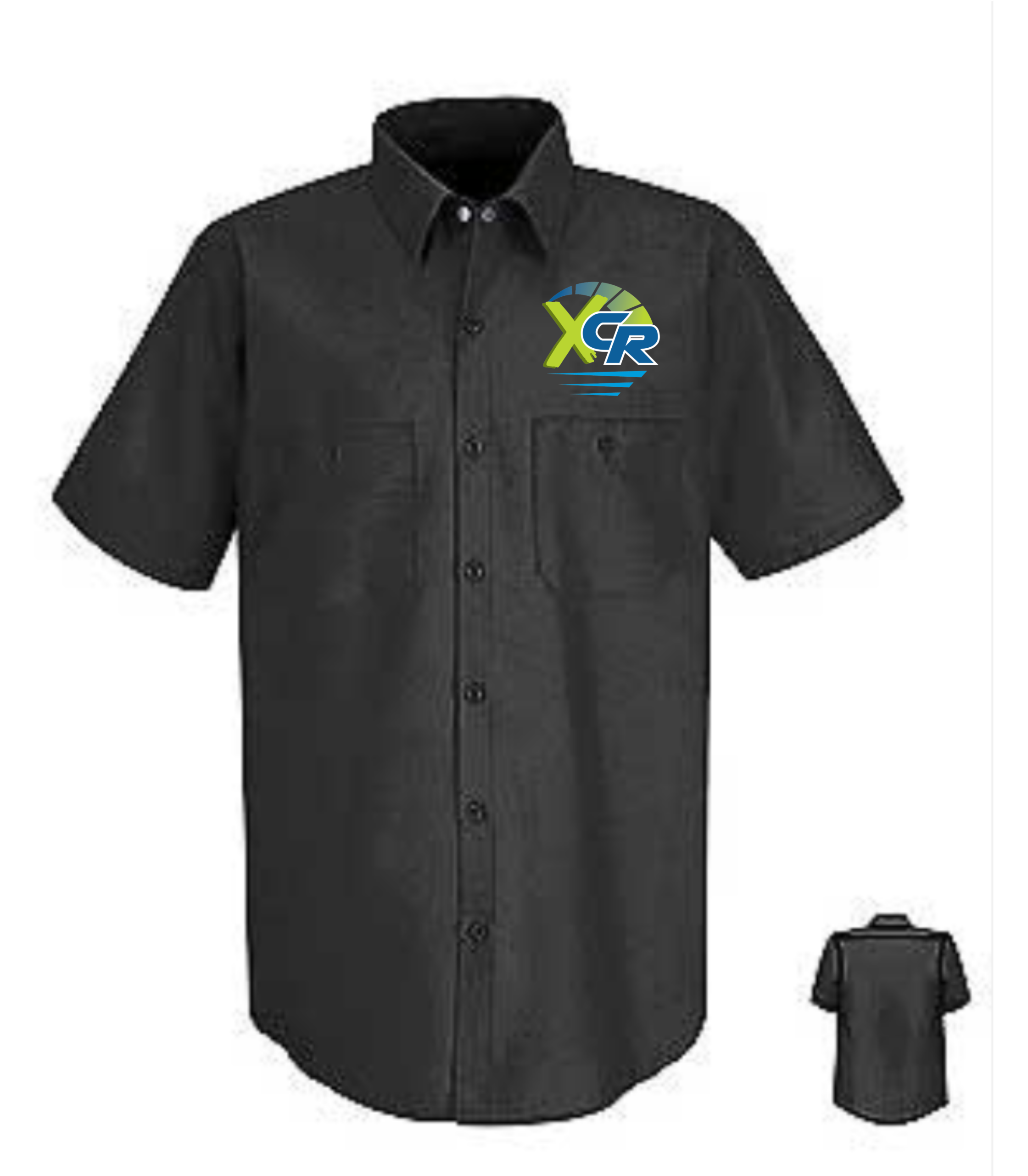 Short Sleeve black work shirt with XCR design printed on front left chest and X-Treme Carpet Raceway full on the back. (See gallery for back)